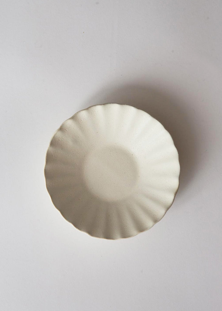 A beautifully handmade fluted ceramic dish, ideal for trinkets or a candle.