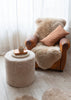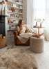 Both tactile and practical, this shearling pouffe works equally well as a sheepskin footstool or ottoman, a simple side table or coffee table, or as a dressing table seat in a bedroom.