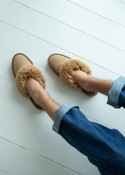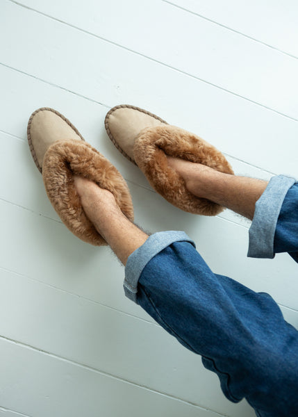 Children's Sheepskin Mule Slippers – Lucky Stars – Blue