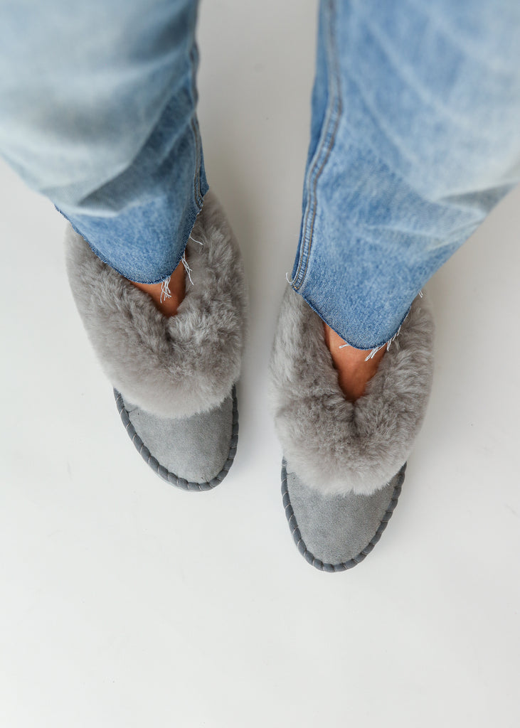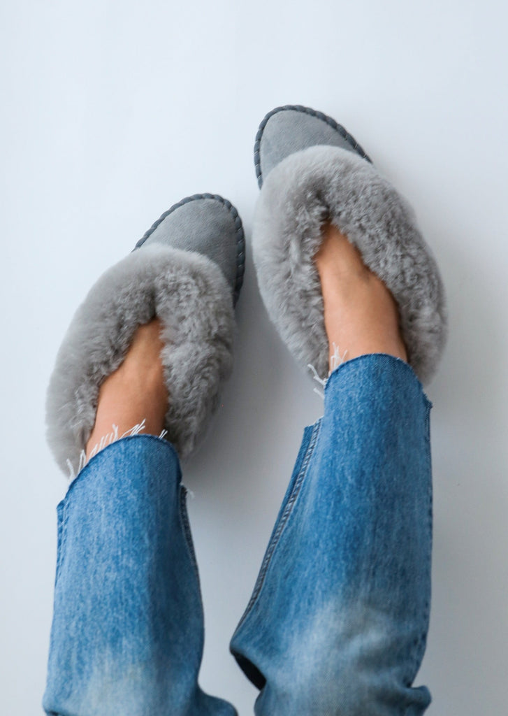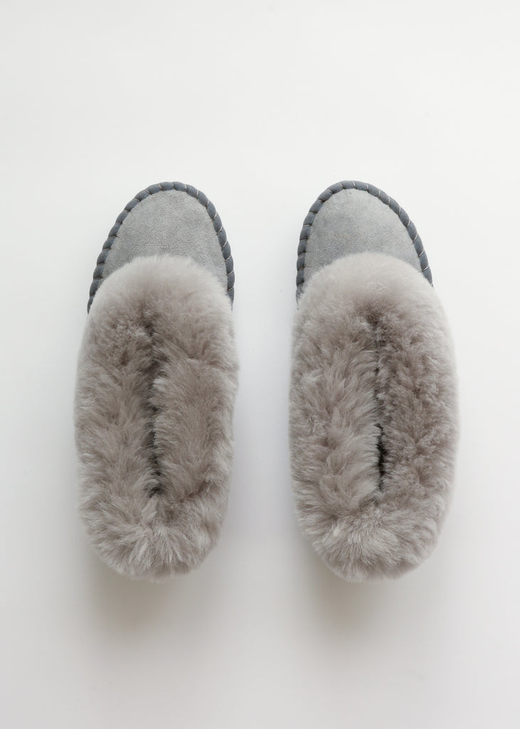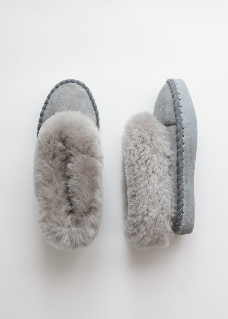Women's Sheepskin Moccasin Slippers – Soft Grey