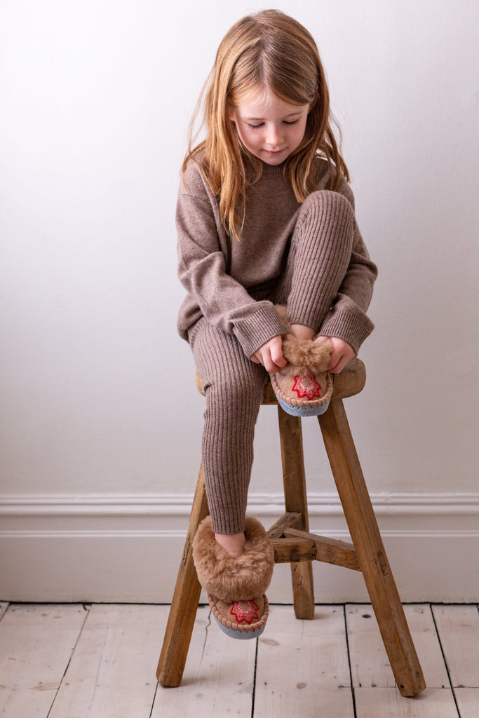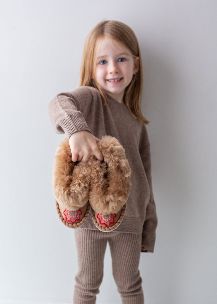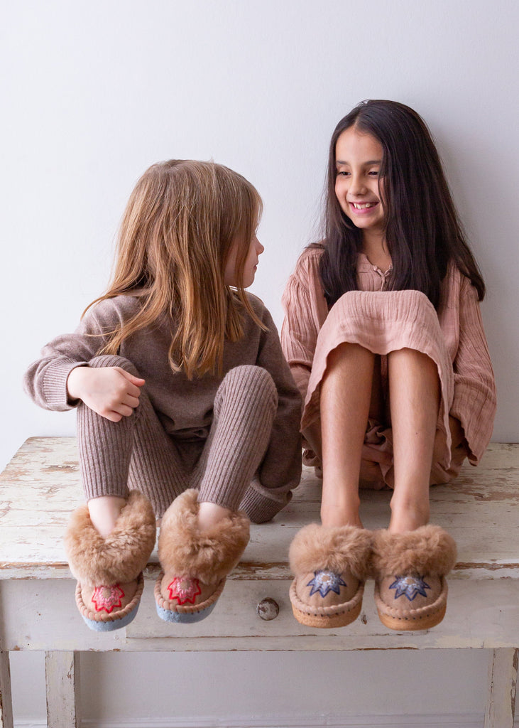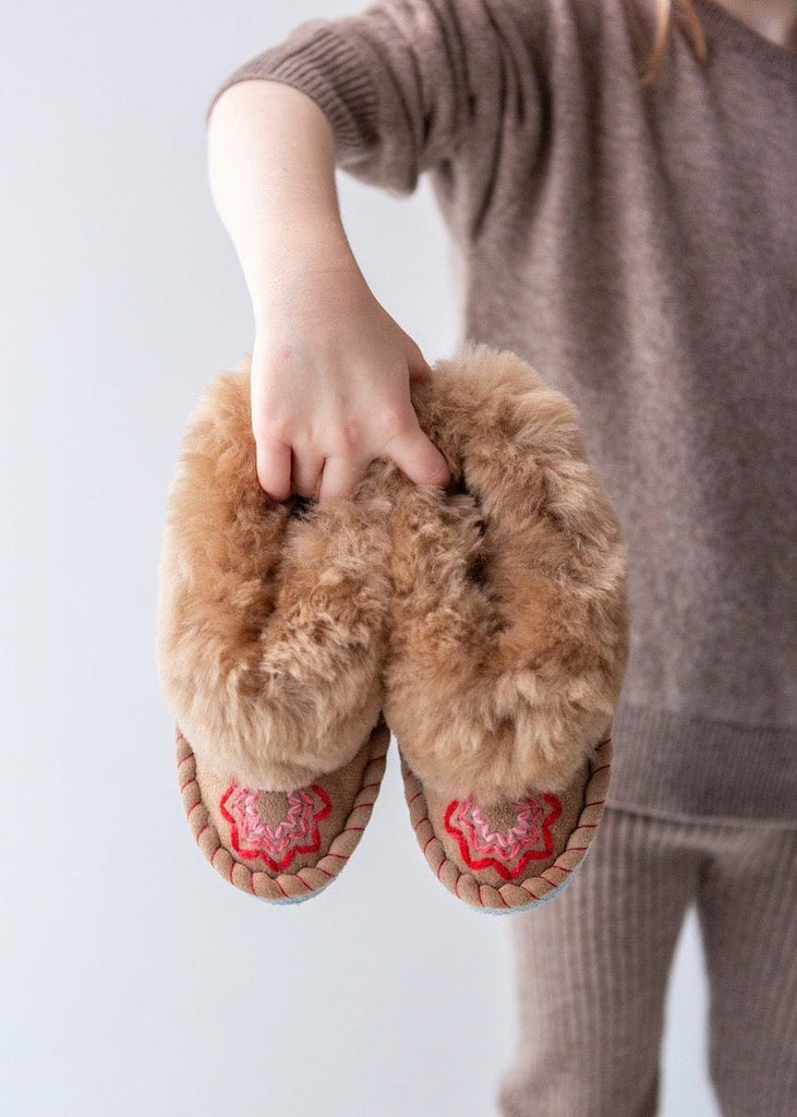 / Children's Sheepskin Moccasin Slippers – Lucky Stars – Red